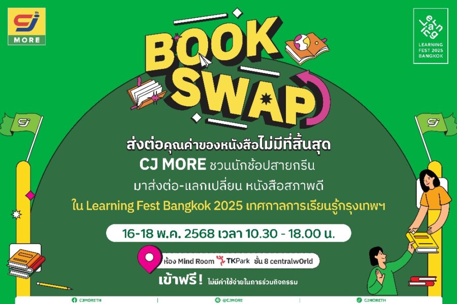 ซีเจ มอร์ (CJ MORE) ผนึกกำลังกับ Learning Fest Bangkok 2025 เทศกาลการเรียนรู้แห่งปีที่จัดโดยสถาบันอุทยานการเรียนรู้ TK Park ร่วมเปิดพื้นที่แห่งการแบ่งปันความรู้และแรงบันดาลใจให้กับคนทุกวัย โดยในปีนี้จัดขึ้นภายใต้แนวคิด “Givetopia – อุดมการ(ณ์)ให้” ส่งกิจกรรม “CJ Book Swap” เชิญชวนนักอ่านนักช้อปสายกรีน นำหนังสือสภาพดีที่ไม่ได้อ่านแล้ว มาแลกเปลี่ยนเป็นหนังสือเล่มใหม่กลับไปอ่านที่บ้านได้แบบฟรีๆ […]