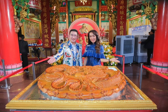 โดยมี อ.คฑา ชินบัญชร พรีเซ็นเตอร์เที่ยวไทยรับพลังบวก เที่ยวไทยสายศรัทธา นำไหว้พระจันทร์ พร้อมร่วมตัดขนมไหว้พระจันทร์ใหญ่ที่สุดในโลก ประจำปี 2568 ณ มณฑลพิธี มูลนิธิเทียนฟ้า กรุงเทพฯ