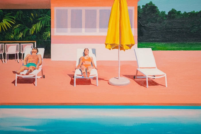 Kim Ok-Jin – ผลงานของเธอเปรียบเสมือนบทกวีเงียบงัน ถ่ายทอดความรู้สึกโดดเดี่ยวอย่างลึกซึ้ง สวยงาม พร้อมทั้งตั้งคำถามกับความว่างเปล่าภายในความสัมพันธ์ของผู้คน ภาพสระว่ายน้ำอันเงียบสงบและฉากชีวิตที่โดดเดี่ยวของผู้คนในอพาร์ตเมนต์สูง สื่อถึงการมีอยู่ของ “ความว่าง” และ “ความไม่เชื่อมโยง” อย่างมีพลัง เธอสามารถถ่ายทอดจิตวิญญาณของตัวแบบลงในภูมิทัศน์ได้อย่างเป็นเอกลักษณ์ Kim Ok-Jin เป็นหนึ่งในศิลปินที่มาแรงที่สุดในเกาหลีใต้ ผลงานของเธอกลายเป็นที่ต้องการของนักสะสม และทำสถิติราคาประมูลสูงอย่างต่อเนื่อง