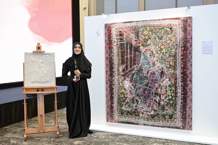 กรุงเทพ 8 ตุลาคม 2568 – ธนาคารยูโอบี ประเทศไทย มอบรางวัลชนะเลิศการประกวดจิตรกรรมยูโอบี ประจำปี 2568 แก่คุณยามีล๊ะ หะยี จากผลงานเย็บปักถักร้อยบนผืนผ้าในชื่อ ดุอาอ์ (วิงวอนขอพร) ซึ่งถ่ายทอดภาพของสตรีผู้วิงวอนให้โลกเต็มไปด้วยความหวังและสันติภาพ ถ่ายทอดเรื่องราวผ่านเส้นด้ายที่ถักร้อยชีวิตเข้ากับความฝันอย่างประณีต บ่งบอกเรื่องราวอันทรงพลังที่ผสมผสานระหว่างจิตวิญญาณ และจินตนาการได้อย่างงดงาม