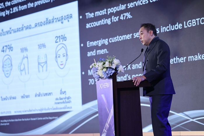 สำหรับการสร้างปรากฏการณ์ใหม่ด้วยการเปิดตัวเทคโนโลยี “โปรแกรม XTHERMA” คุณสุมิตรเผยรายละเอียดว่า “เทคโนโลยีอย่าง โปรแกรม XTHERMA ถือเป็นตัวช่วยสำคัญในการดูแลผิวแบบองค์รวม เพราะสามารถดูแลได้ทั้งผิวหน้าและผิวกายในระดับลึก ช่วยกระตุ้นการสร้างคอลลาเจน ฟื้นฟูความยืดหยุ่น และความกระชับของผิวอย่างเป็นธรรมชาติ สิ่งที่ทำให้ โปรแกรม XTHERMA ตอบโจทย์เทรนด์ Longevity คือ ไม่ได้เน้นแค่ผลลัพธ์ชั่วคราว แต่เน้นการดูแลผิวให้แข็งแรงจากภายใน เพื่อคงความอ่อนเยาว์ในระยะยาว โดยไม่ต้องพึ่งการทำหัตถการที่รุนแรงหรือเปลี่ยนโครงสร้างใบหน้า นอกจากนี้ โปรแกรม XTHERMA ยังเหมาะกับไลฟ์สไตล์คนยุคใหม่ที่ต้องการผลลัพธ์แบบ ‘เห็นผลแต่ยังดูธรรมชาติ’ ช่วยเสริมการดูแลสุขภาพผิวครบทุกมิติ ทั้งภายนอกและภายใน”