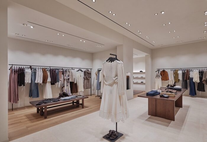 ในส่วนการจัดสรรพื้นที่ของร้าน บริเวณทางเข้าถูกออกแบบให้มีความโปร่งโล่งสบายตา พร้อมต้อนรับทุกคนด้วยวินโดว์ดิสเพลย์ ซึ่งได้จัดแสดงคอลเลคชันต่างๆ ที่จะผลัดเปลี่ยนในแต่ละซีซัน เพื่อดึงดูดความสนใจให้ลูกค้าได้เข้ามาเลือกชมสินค้าภายในร้านที่มีการแบ่งแยกโซนไว้อย่างลงตัวให้ง่ายต่อการเข้าถึง ทั้งคอลเลคชันของสุภาพสตรีและสุภาพบุรุษ และยังมีการใช้แสงไฟในการรังสรรค์บรรยากาศให้มีความอบอุ่นและเป็นธรรมชาติอีกด้วย