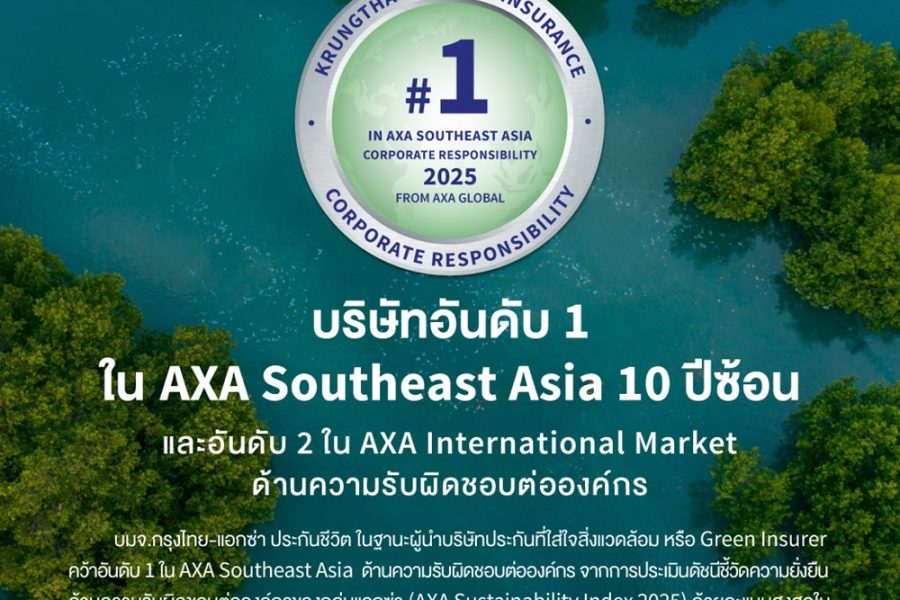 บมจ.กรุงไทย–แอกซ่า ประกันชีวิต ในฐานะผู้นำบริษัทประกันที่ใส่ใจสิ่งแวดล้อม หรือ Green Insurer ด้วยความสำเร็จที่ภาคภูมิใจจากการคว้าอันดับ 1 ในเอเชียอาคเนย์ต่อเนื่อง 10 ปีซ้อน และอันดับ 2 ใน AXA International Market ด้านความรับผิดชอบต่อองค์กร จากการประเมินดัชนีชี้วัดความยั่งยืนด้านความรับผิดชอบต่อองค์กรของกลุ่มแอกซ่า (AXA Sustainability Index 2025) ด้วยคะแนนสูงสุดในเอเชียตะวันออกเฉียงใต้ […]