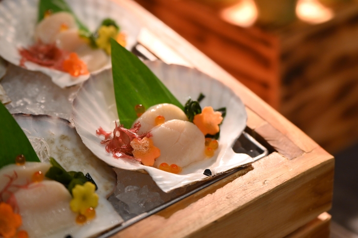 สำหรับ โฮตาเตะ (HOTATE) เป็นหอยเชลล์สัญชาติญี่ปุ่นชื่อดังที่ขึ้นชื่อเรื่องคุณภาพดี มีขนาดใหญ่ และมีรสชาติหวานอร่อย จนได้รับฉายาว่าราชาแห่งหอย ถือเป็นอาหารทะเลที่อุดมไปด้วยสารอาหาร มีโปรตีนสูงและแคลอรีต่ำ พร้อมมีคุณประโยชน์ที่ดีต่อสุขภาพมากเป็นอันดับต้นๆ โดยหอยเชลล์โฮตาเตะในประเทศญี่ปุ่นจะเป็นการเพาะเลี้ยงตามธรรมชาติที่คำนึงถึงสิ่งแวดล้อม ในบริเวณที่มีน้ำสะอาดและอุณหภูมิต่ำเท่านั้น รวมถึงใช้นวัตกรรมการแปรรูปและแช่แข็งอย่างรวดเร็วทันทีหลังจับหอยเชลล์โฮตาเตะ เพื่อเก็บกักความสดใหม่สูงสุดจากทะเลสู่ตลาดอย่างเต็มรูปแบบ คงไว้ซึ่งคุณภาพสูงสุดและความอร่อยที่ไม่เปลี่ยนแปลงแม้จะส่งออกไปยังต่างประเทศ
