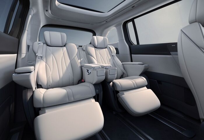 รถตู้ไฟฟ้าทรงสปอร์ตอัจฉริยะรุ่นท็อป ที่มาพร้อมความพิเศษยิ่งขึ้น โดดเด่นด้วยสีภายนอกMatte Gray ครั้งแรกในตลาด MPV ไฟฟ้า สอดรับกับเฉดสีภายในใหม่ Light Gray เบาะหนังแท้แนปป้า (Nappa) ผสานฟังก์ชั่น Zero-gravity Seat หรูหรามีระดับ เบาะนั่งแถวสองปรับไฟฟ้า 18 ทิศทาง พร้อมที่ชาร์จแบบไร้สาย 50 วัตต์ ล้ออัลลอยใหม่ดีไซน์แบบ Starlight Floating Wheels ขนาด 20 นิ้ว ผสานการขับเคลื่อนด้วยเทคโนโลยีแบตเตอรี่ 800 โวลต์ รองรับความเร็วในการชาร์จสูงสุดถึง 317 กิโลวัตต์ แบตเตอรี่ NCM ขนาด 101.5 กิโลวัตต์ ชาร์จไฟเต็มขับได้ไกลสุด 690 กิโลเมตร (NEDC) อีกทั้งยังมาพร้อมระบบเลี้ยว 4 ล้อ ให้รัศมีวงเลี้ยวเพียง 5.4 เมตร
