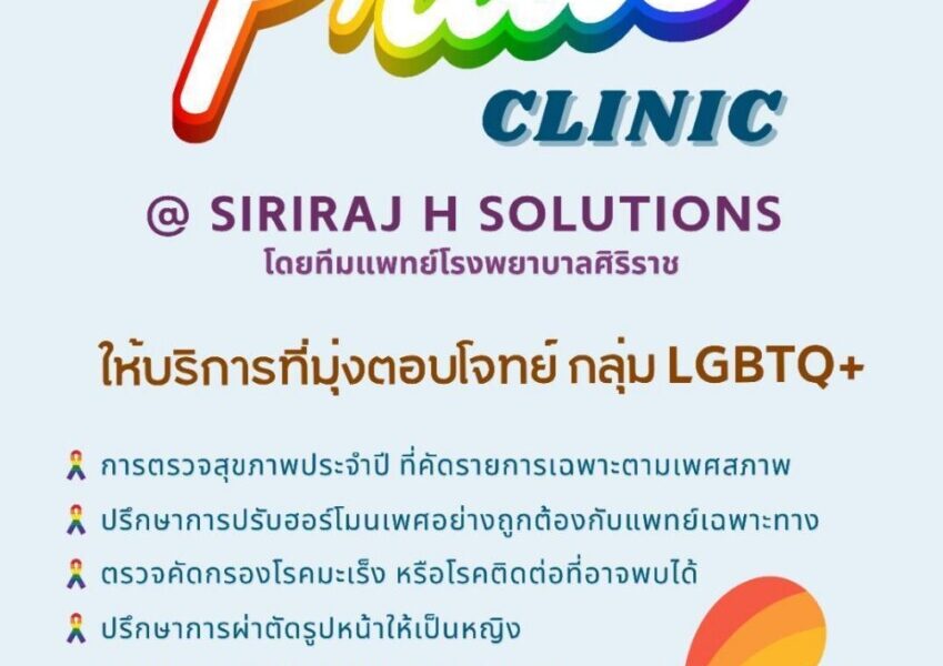 SIRIRAJ H SOLUTIONS ณ ชั้น 5 ICS Lifestyle Complex ตรงข้ามไอคอนสยาม เปิดบริการใหม่ Pride Clinic ตอบโจทย์สุขภาพเพื่อความหลากหลายทางเพศ