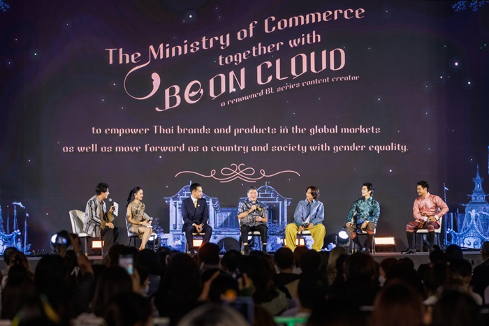 จัดงานยิ่งใหญ่สมกับเป็นโปรเจกต์ยักษ์รับปี 2567 สำหรับงานแถลงข่าวความร่วมมือระดับประเทศ ระหว่าง กระทรวงพาณิชย์ และ บริษัท บี ออน คลาวด์ ผู้ผลิตซีรีส์วายระดับโลก ที่จัดขึ้นเพื่อยกระดับสินค้าไทยออกสู่ตลาดโลกได้อย่างแท้จริง พร้อมสร้างความเข้าใจถึงความสำคัญของทุกภาคส่วนในการร่วมกันพัฒนาอุตสาหกรรมในหลากหลายมิติ และยังร่วมสนับสนุนประเทศไทยให้ก้าวเข้าสู่สังคมแห่งความเท่าเทียมทางเพศ เมื่อค่ำวันพุธที่ 31 มกราคม 2567 ณ กระทรวงพาณิชย์