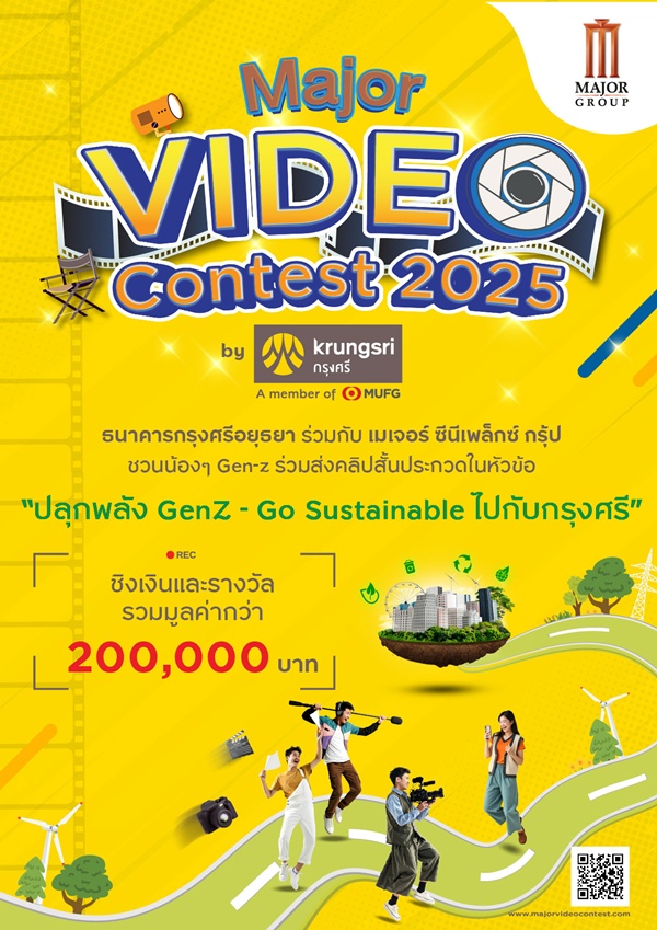 “Krungsri x Major” ชวน Gen Z ร่วมโชว์ไอเดียสร้างสรรค์เพื่อสังคมยั่งยืน กับเวทีประกวดคลิปวิดีโอ “Major Video Contest 2025 by Krungsri” ปีที่ 11 ชิงรางวัลรวมกว่า 200,000 บาท!