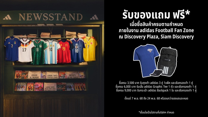 อาดิดาส และสยามดิสคัฟเวอรี่ เปิด “adidas Football Fan Zone” ชวนแฟนบอลร่วมนับถอยหลังสู่ฟุตบอลโลก 2026 และเป็นเจ้าของเสื้อแข่งขันทีมชาติก่อนใคร! ที่ Discovery Plaza, Siam Discovery