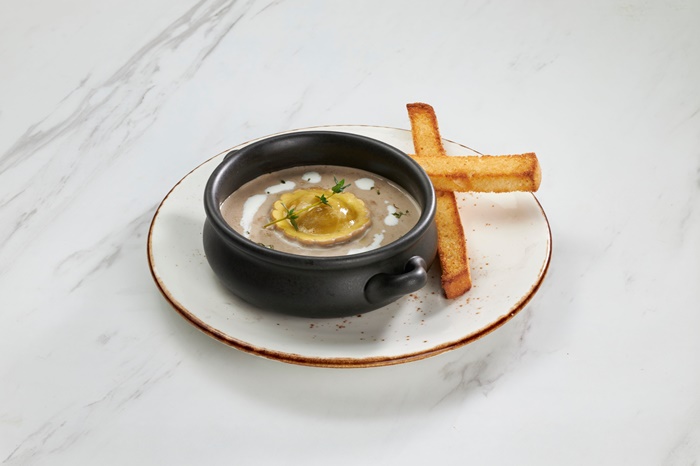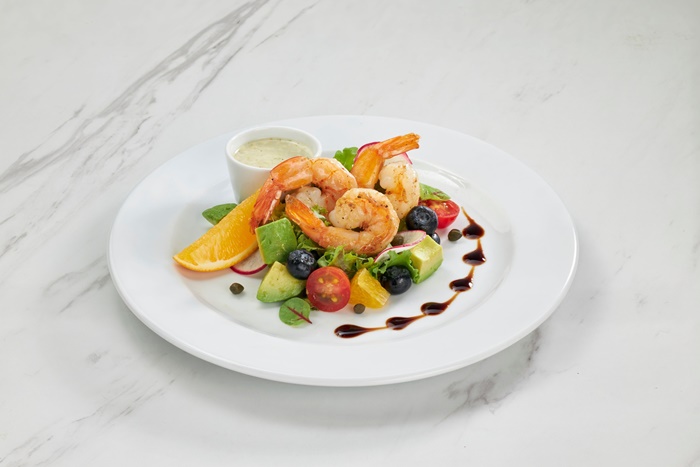 ต่อด้วย Truffle Mushroom Cream Soup ซุปครีมเห็ดที่เสิร์ฟพร้อมราวีโอลีและขนมปังกรอบ ที่มอบอรรถรสในการทานได้อย่างลงตัว เท่านั้นยังไม่พอต่อด้วย Seared Prawns with Avocado and Spicy Mayo Dressing กุ้งย่างที่ย่างจนสุกกำลังดี ทานคู่อะโวคาโด พร้อมซอสสไปซี่มายองเนส ซึ่งเป็นเมนูปิดจบคอร์สทานเล่นได้อย่างสมบูรณ์แบบ