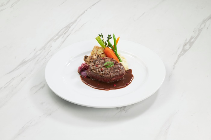 สำหรับจานหลักมีให้เลือกหลากหลายเมนูไม่ว่าจะเป็น Grilled Beef Tenderloin with Red Wine Sauce & Greens สเต๊กเนื้อสันในย่างกับซอสไวน์แดง เสิร์ฟพร้อมแคร์รอตและมันฝรั่งบด ที่มาในรสชาติที่เข้มข้นกลมกล่อม