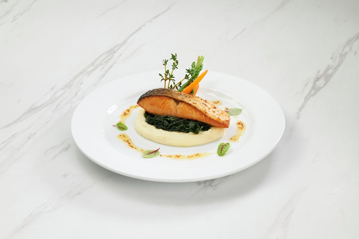 หรือจะรับเป็น Dijon Miso Salmon with Potato Puree & Spinach ปลาแซลมอนชิ้นโต นำไปย่างจนได้เนื้อสัมผัสนุ่มนวลละมุนลิ้น มาพร้อมซอสมิโซะดิฌง ทานคู่ผักเคียง เมนูสุดฟินที่ใครได้กินเป็นต้องติดใจ