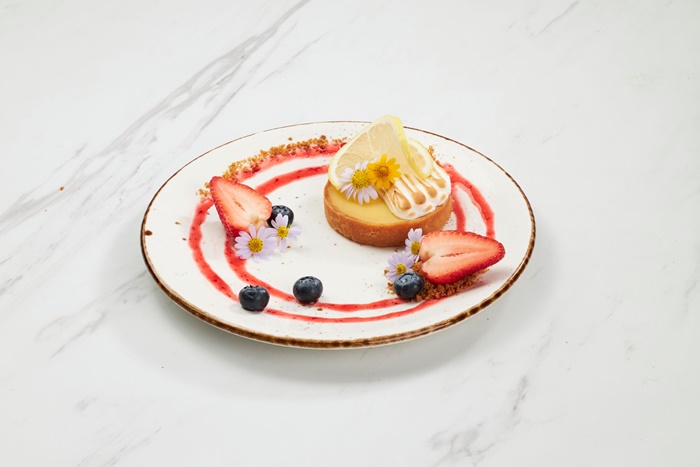 ในส่วนเมนูของหวาน เดอะ คอฟฟี่ คลับ เลือกเสิร์ฟด้วย Lemon Tart with Fresh Berry ทาร์ตรสชาติครีมเลมอนเปรี้ยวหวาน ทานคู่เบอร์รี่หลากชนิด ซึ่งเป็นเมนูปิดจบคอร์สได้อย่างดี