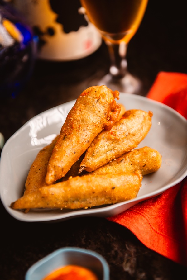 “Okra Tempura” กระเจี๊ยบเทมปุระ จิ้มด้วยมายองเนสฮาริสซ่า