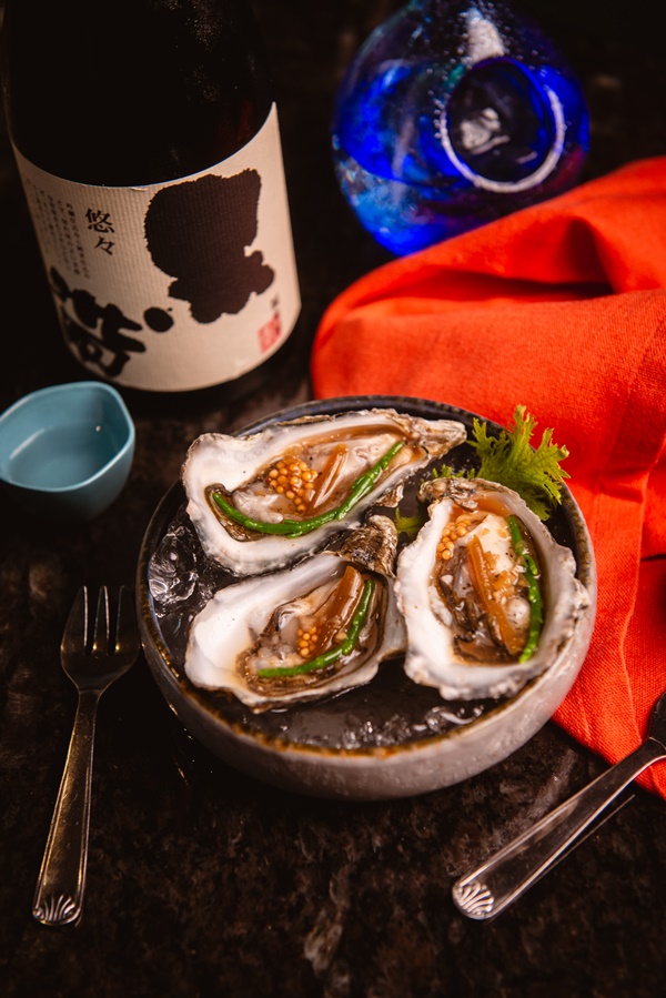 “Oysters” หอยนางรม N4 Ostra Regal ราดซอสซัมไบซึ เสิร์ฟพร้อมเครื่องเคียงอย่างผักดอง