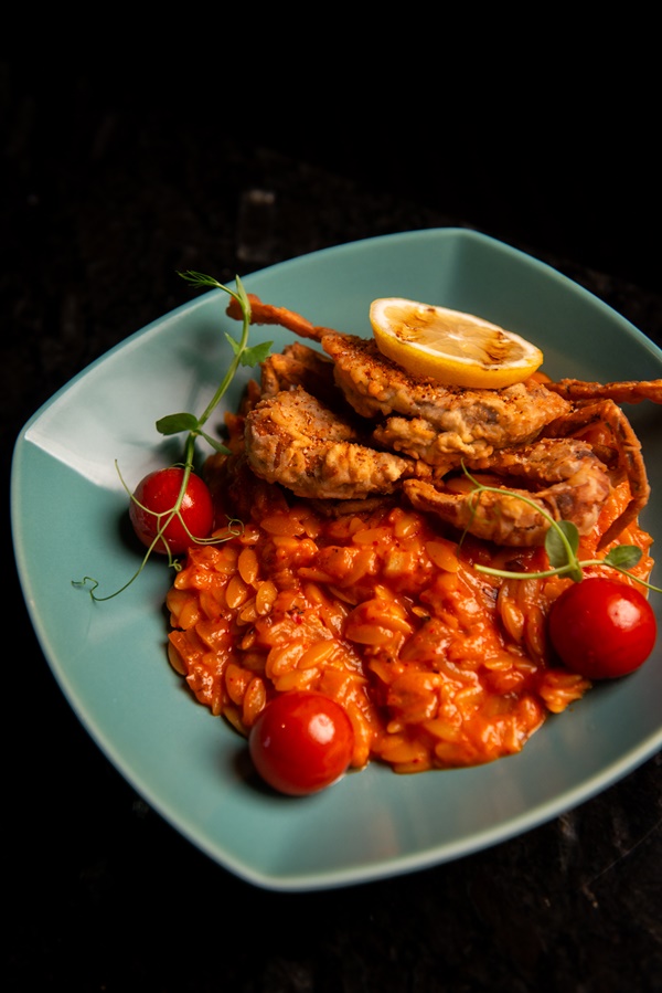 “Orzo Pasta” พาสต้าออร์โซปูนิ่มกรอบ คลุกด้วยซอสโทนาตโต้ และมะเขือเทศเชอร์รี่