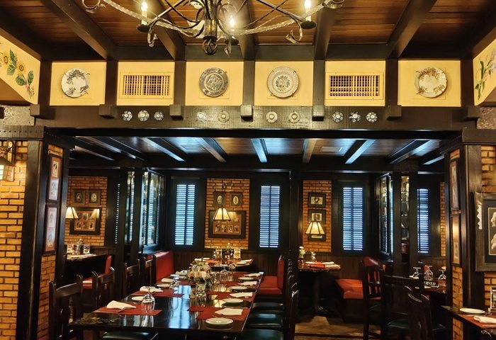 เราชอบบรรยากาศที่อบอวลไปด้วยแสงสลัวอันนุ่มนวล และการตกแต่งด้วยของเก่าสไตล์วินเทจ รวมถึงรูปภาพเก่าๆ ที่บอกเล่าเรื่องราวแห่งยุคสมัย ช่วยเสริมให้บรรยากาศดูภูมิฐานและเป็นส่วนตัวมากขึ้น เหมาะอย่างยิ่งสำหรับการฉลองโอกาสพิเศษ ไม่ว่าจะเป็นมื้อกลางวันหรือมื้ออาหารค่ำสุดโรแมนติก หรือการพบปะทางธุรกิจที่ต้องการความเป็นทางการอย่างมีระดับ