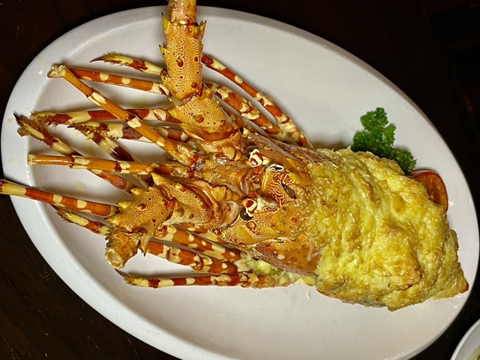 Phuket Lobster Thermidor กุ้งมังกรอบภูเก็ตเทอร์มิดอร์ “อบซอสครีม” ราคาตามน้ำหนัก ใช้กุ้งล็อบสเตอร์จากภูเก็ต มี 3 ขนาด (S, M, L) ให้เลือกปรุงอย่างพิถีพิถันหลากหลายเมนู เช่น Baked Lobster, Smoked or Grill Phuket Lobster, Phuket Lobster Thermidor