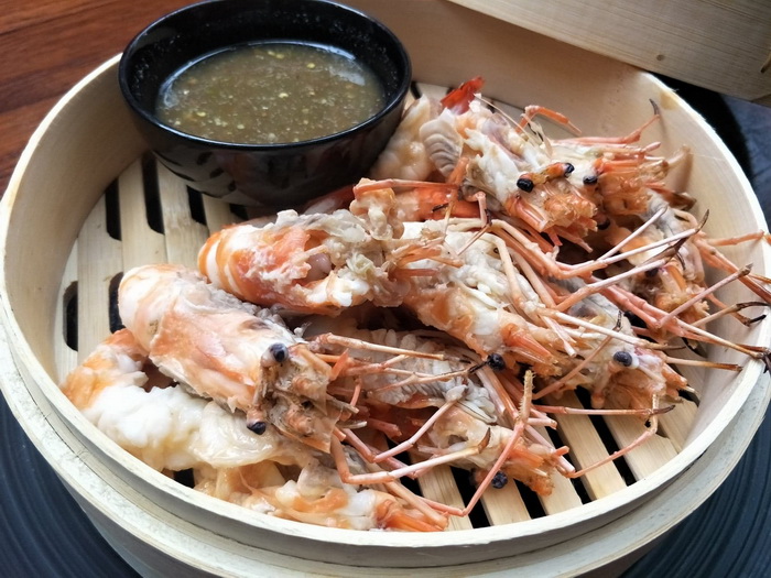 กุ้งนึ่งเทพรส กุ้งแม่น้ำขนาดกลาง จากอยุธยา กุ้งแม่น้ำสดแกะเปลือกพร้อมทาน เสิร์ฟพร้อมกับน้ำจิ้มซีฟู้ดสูตรของทางร้านเทพรส