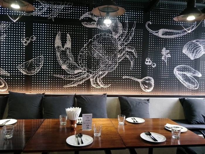 สำหรับคนที่ชอบการถ่ายภาพบอกเลยว่าไม่ผิดหวัง บรรยากาศภายในร้านมีความเรียบหรูดูสวยงาม โดยเฉพาะตรงบันไดวนขึ้นชั้น 2 เป็นจุดเช็คอินของทางร้านเลยทีเดียว ร้านนี้รับลูกค้าได้ประมาณ 50-60 ที่นั่งแบบสบายๆ ส่วนชั้น 2 โซนด้านใน เหมาะสำหรับจัดเลี้ยงหรือสังสรรค์ส่วนตัว ประมาณ 20 ที เป็นโซฟายาวติดผนัง หลังคาแบบซันลูปสามารถเปิด-ปิดได้ ในช่วงงกลางวันเปิดให้แสงสว่างสาดส่องลงมาได้ ส่วนกลางคืนก็มองเห็นพระจันทร์กับดวงดาวกลางกรุง