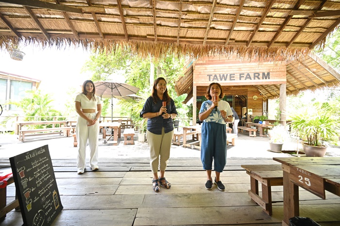 หลังจากนั้นพาคณะฯ ไปรับประทานกลางวันที่ตาวีฟาร์มเขาใหญ่ เรียนรู้โภชนาการผ่านผักผลไม้หลากสี และน้ำสกัดเย็น 4 สี ได้แก่ สีแดงของน้ำบีทรูท บำรุงเลือด บำรุงสายตา ต้านเนื้องอก สีเขียวของผักเคลที่อุดมด้วยธาตุเหล็ก สีส้มของแครอท ช่วยยับยั้งการเกิดโรคมะเร็ง บำรุงสายตา และบำรุงผิวพรรณ สีเหลืองของขิง ช่วยเผาผลาญไขมัน ต้านหวัด แก้ท้องอืด จุกเสียด ขับลม