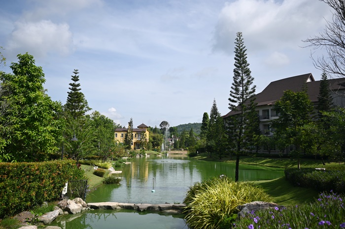 เหนื่อยจากการเดินทางและเล่นน้ำ พายเรือกันแล้ว ก็เข้าที่พัก ณ รีสอร์ตหรูห้าดาว U Khao-Yai เป็นรีสอร์ตขนาดเล็ก 3 ชั้น มีห้องพักประมาณ 60 กว่าห้อง แวดล้อมไปด้วยสวนสไตล์ฝรั่งเศสที่ตกแต่งไว้อย่างสวยงาม ด้านหลังติดกับแม่น้ำลำตะคอง เงียบสงบ และเป็นส่วนตัวมาก มีสระว่ายน้ำ ฟิตเนส สปา ห้องจัดเลี้ยง ครบครัน