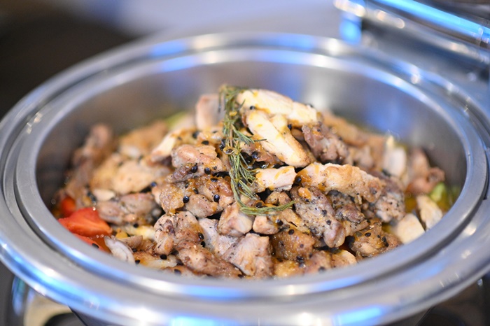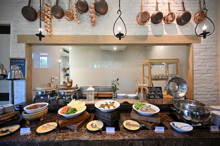 เรียกเหงื่อกับการออกกำลังกายแล้ว มาเติมพลังด้วยอาหารเช้าแบบชิลล์ๆ ที่ห้องอาหารปาปิญอง ที่มีเมนูหลากหลายให้เลือก ทั้งอาหารไทย ยุโรป ไส้กรอก เบคอน แพนเค้ก ไข่ดาว ไข่ลวก ไข่ต้ม ออมเล็ต ชีส ขนมปัง ก๋วยเตี๋ยว ข้าวต้ม ใครชอบความแซ่บ เขาก็มีขนมจีน น้ำยาโคราช แกงเขียวหวาน เสิร์ฟด้วย พร้อมเครื่องดื่มสุขภาพ เช่น น้ำฝรั่ง น้ำองุ่น ชา กาแฟ เรียกว่านั่งทานกันได้แบบไม่สบาย ไม่เร่งร้อน