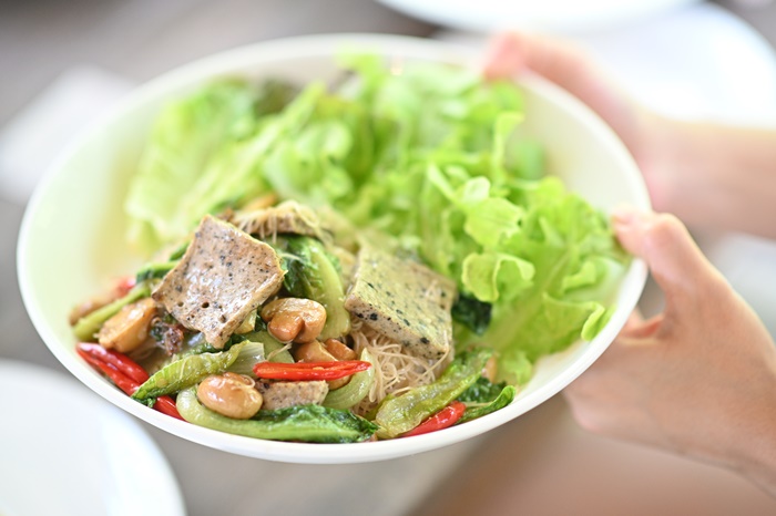 ส่วนเมนูมื้อกลางวันนี้มีทั้งไทยและฝรั่ง สลัด ซุปฟักทอง Fusilli Pesto Pasta with Shrimp หมี่ผัดเบบี้คอสและซุปผักเคล นอกจากจะได้ทานผักปลอดสารสดๆ จากฟาร์มแล้ว ทุกเมนูยังอุดมด้วยวิตามินและแร่ธาตุที่ดีต่อร่างกาย ดีต่อใจ