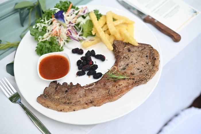 ไร่มัลเบอร์รี่มีผลิตภัณฑ์จากมัลเบอร์รีหลากหลาย อาทิ น้ำมัลเบอร์รี่คั้นสด ไอศกรีมมัลเบอร์รี่ ไวน์ แยม ซึ่งมัลเบอร์รี่เป็นผลไม้ที่มีวิตามินบี 6 ช่วยบำรุงเลือด ตับ ไต ช่วยคลายเครียด และวิตามินเอ ช่วยบำรุงสายตา บำรุงเหงือกและฟัน ส่วนเมนคอร์สมื้อนี้เป็นพอร์คช้อปพริกไทยดำ ที่ได้คุณค่าทางโภชนาการจาก “พริกไทยดำ” ซึ่งอุดมไปด้วยสารต้นอนุมูลอิสระ วิตามินเอ และแคโรทีนอยด์ มีส่วนช่วยในการรักษามะเร็ง นอกจากนี้ยังมีกรดเกลือหรือกรอดไฮโดรคลอริก ช่วยย่อยโปรตีนในอาหาร และกระตุ้นการย่อยอาหารให้เร็วขึ้นด้วย และ “โรสแมรี” มีสารต้านอนุมูลอิสระ ต้นการอักเสบ ต้านสารก่อมะเร็ง มีคุณสมบัติช่วยย่อยอาหาร แก้อาการจุกเสียดแน่นท้อง ท้องอืด ท้องเฟ้อ ก่อนกลับยังมีกิจกรรมสาธิตการทำแยมมัลเบอร์รี่ที่ขึ้นชื่อของที่นี่อีกด้วย เรียกว่าอิ่มอร่อยและได้ความรู้กลับไปเต็มๆ หลังจากผ่านสองคืนกับสามวันอันแสนวิเศษ เติมเต็มพลังพร้อมกลับมาต่อสู้กับชีวิตประจำวันอีกครั้ง