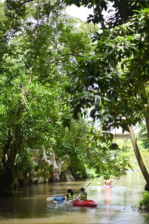 หลังจากหนังท้องตึงแล้ว ไปเบิร์นไขมันด้วยการพายเรือคายักและเล่นน้ำที่น้ำพุธรรมชาติ บ้านท่าช้าง น้ำใส เย็นสบายมาก เส้นทางพายเรือคายักตลอดสองข้างทางเต็มไปด้วยต้นไม้ บรรยากาศดีๆ แบบนี้ที่เขาใหญ่ก็มีนะคะ