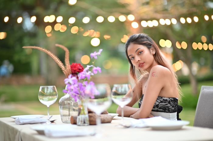 หลังจากเดินชมบรรยากาศรอบๆ โรงแรม และพักผ่อนหย่อนใจในห้องพักที่แสนจะโรแมนติก มองเห็นสระว่ายน้ำและสวนสบายตา ก็ถึงเวลาอาหาค่ำที่ห้องอาหารปาปิญองในบรรยากาศฝรั่งเศสชนบท ธีมวันนี้เป็นเอิร์ธโทน ซึ่งทุกคนก็จัดเต็มไม่มีใครยอมใคร ก่อนจะเริ่มทานอาหารเหล่าบล็อกเกอร์และสื่อมวลชนก็ไม่พลาดที่จะเก็บภาพบรรยากาศสวยๆ ของสวนและโรงเพาะชำเพื่อโพสต์ลงในเพจของตัวเอง บรรยากาศสนุกสนานและเป็นกันเองมาก