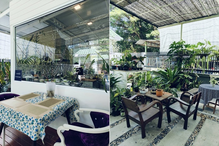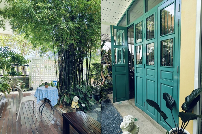 ชอบบรรยากาศร้านที่เป็นเหมือนบ้าน เดินเข้ามาจะมีที่นั่งในสวนเล็กๆ ตกแต่งด้วยต้นไม้ที่เจ้าของร้านปลูกขาย และให้ความร่มรื่นไปด้วย ขึ้นวังเป็นร้านเล็กๆ มีที่นั่งทั้งโซนเอ้าท์ดอร์และอินดอร์ ภายในร้านแบ่งเป็น 2 โซน สำหรับจัดเลี้ยงแบบกันเอง แต่ไม่รู้สึกว่าอึดอัด เพราะล้อมรอบด้วยกระจกใส มองเห็นวิวต้นไม้สีเขียว ให้ความรู้สึกร่มรื่น โดยทางร้านจัดโต๊ะและวางเมนูไว้อย่างสวยงาม พร้อมสำหรับรับแขกที่สั่งจองไว้