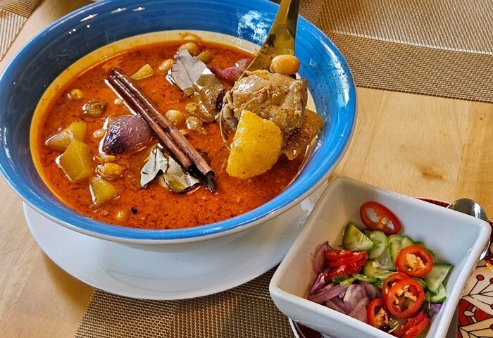มัสมั่นไก่นุ่มเม็ดบัว เป็นเมนูอาหารในกาพย์เห่ชมเครื่องคาวหวานในรัชกาลที่ 2 มัสมั่นไก่เนื้อนุ่มมาก นอกจากมันฝรั่งแล้วยังใส่เม็ดบัวลงไปด้วย รสชาติออกรสหวานนิดๆ มีความหอมของเครื่องเทศ อย่างอบเชย ทานคู่กับอาจาด ฟินมาก บอกเลยว่ามัสมั่นที่นี่รสชาติถึงเครื่อง สิบเต็มสิบไม่หัก ใครแวะมาที่นี่ห้ามพลาดเลยนะคะ