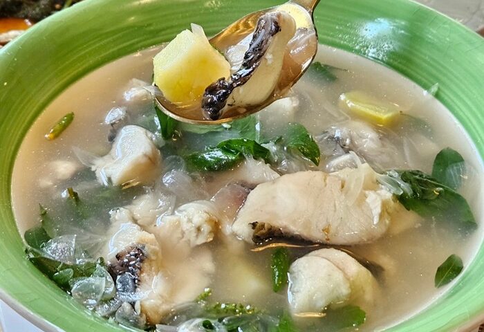ต้มจิ๋วปลามังสวิรัติ (พระองค์เจ้าเยาวภาพงศ์สนิท) เห็นน้ำซุปใสๆ แบบนี้ แต่รสชาติว้าวมาก เครื่องปรุงน้อยแต่อร่อยดด้วยวัตถุดิบ ไม่ว่าจะเป็นความหวานจากมันเทศและหอมแดง ความเปรี้ยวจากน้ำมะขามเปียก และเติมพริกขี้หนูและน้ำปลาเล็กน้อย เป็นเมนูง่ายๆ แต่หาทานยาก ที่สำคัญคือดีต่อสุขภาพ เป็นซุปใสและไขมันต่ำจากปลาช่อน