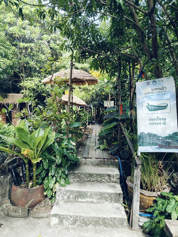 แล้วก็มาถึงกิจกรรมที่เป็นไฮไลต์ของที่นี่ คือ ล่องเรือคลองแพ ชมความร่มรื่นจากพืชพันธุ์แบบดั้งเดิม สัมผัสวิถีชีวิตของชาวบางกอบัว ที่มักทำการเกษตรแบบขุดท้องร่อง สองข้างทางเต็มไปด้วยป่าจาก ซึ่งเป็นพืชพื้นถิ่นของบางกะเจ้า พร้อมสูดโอโซนบริสุทธิ์ตลอดเส้นทาง