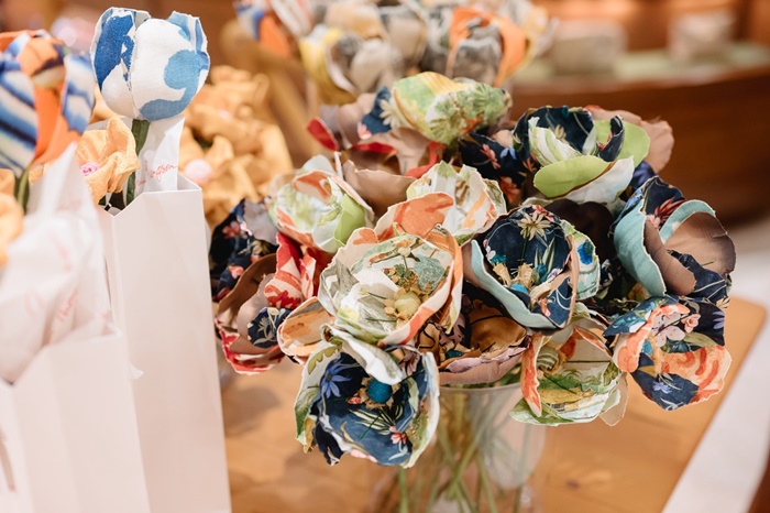 โดยดอกไม้ทั้ง 3 ชนิดที่ผู้ร่วมงานได้ครีเอตนั้นล้วนเปี่ยมด้วยความหมายอันลึกซึ้ง ดอกป๊อปปี้เปรียบดั่งความเสียสละเพื่อคนที่รัก ดอกทิวลิปคือตัวแทนของความรักแสนโรแมนติก และดอกซิลค์ซึ่งเป็นไฮไลต์ของงานที่สื่อคุณค่าที่แสนพิเศษของความรัก โดยผ้าจากจิม ทอมป์สันที่นำมาครีเอตดอกไม้นั้นล้วนเป็นผ้าอัปไซเคิลจากการผลิต เวิร์กชอปครั้งนี้ถือเป็นการเพิ่มคุณค่าให้วัสดุเหลือใช้ด้วยการเปลี่ยนเป็นของขวัญสุดพิเศษจากความตั้งใจของผู้เข้าร่วมทุกคน