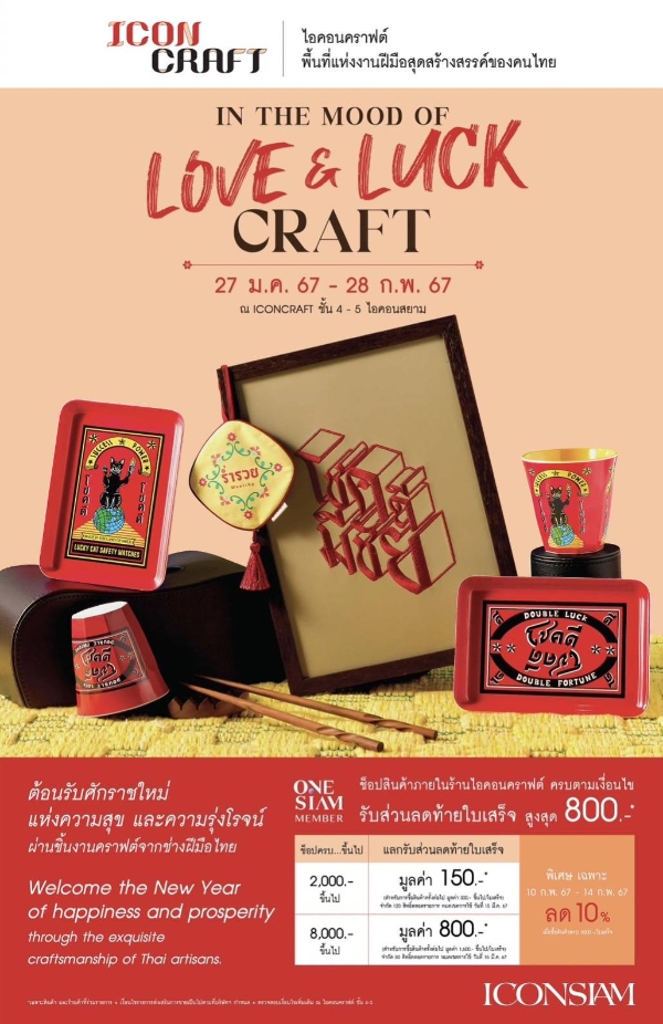 ICONCRAFT ต้อนรับคุณสู่เทศกาลใหม่แห่งความสุข และความรุ่งโรจน์ “IN THE MOOD OF LOVE & LUCK CRAFT” เพลิดเพลินไปกับเหล่าผลงานคราฟต์สุดสร้างสรรค์จากเเบรนด์ยอดฮิต วันนี้-28 ก.พ. 67 ณ ICONCRAFT ชั้น 4-5 ไอคอนสยาม