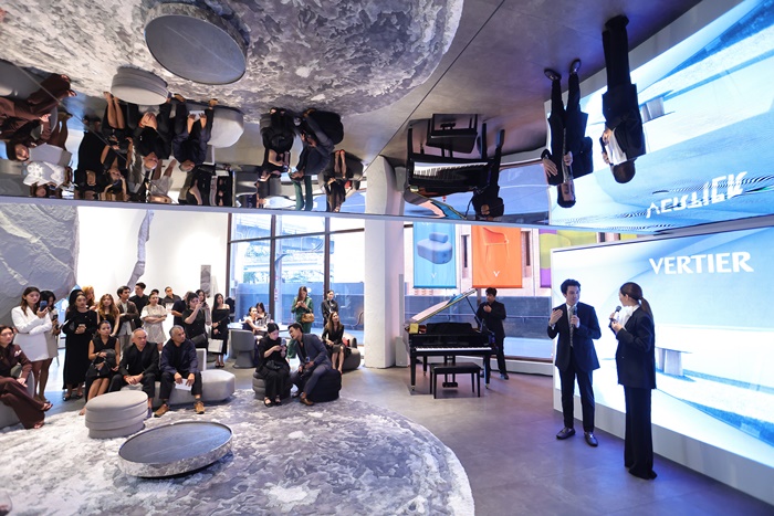 เริ่มตั้งแต่ในโซนแรกอย่างบริเวณพื้นที่ต้อนรับซึ่งรายล้อมไปด้วยกระจกใสเผยให้เห็นรายละเอียดของวัสดุและงานดีไซน์ด้วยแสงธรรมชาติที่ส่องลงมากระทบบรรดาชิ้นงานมาสเตอร์พีซซึ่งการันตีความเลอค่าด้วยวัสดุชั้นเยี่ยมที่คัดสรรมาจากทั่วทุกมุมโลก โดยในโซนนี้ยังโดดเด่นด้วย Meteor V กิมมิคที่ถูกออกแบบมาให้มีรูปทรงคล้ายหินธรรมชาติและอุกกาบาตอันสื่อถึงความเป็นตัวตนของเวอร์เทียร์ที่ทั้งโอบรับวัสดุธรรมชาติ ขณะเดียวกันก็สามารถดูแตกต่างและแปลกใหม่ได้เช่นเดียวกับหินที่มาจากอวกาศ จากนั้นเพลิดเพลินไปกับส่วนนิทรรศการที่รวบรวมผลงานชิ้นสำคัญของเวอร์เทียร์อีกทั้งจากแบรนด์พันธมิตรมาจัดแสดงร่วมกันได้อย่างมีสไตล์ นอกจากนี้ยังมีมุม Immersive ที่พร้อมมอบประสบการณ์เหนือระดับในการชมสินค้าผ่านการใช้ลูกเล่นแสง สี เสียง ที่จะทำให้คุณรู้สึกมีส่วนร่วมและตื่นตาไปกับผลงานดีไซน์อันยอดเยี่ยมจากเวอร์เทียร์กว่าที่เคย