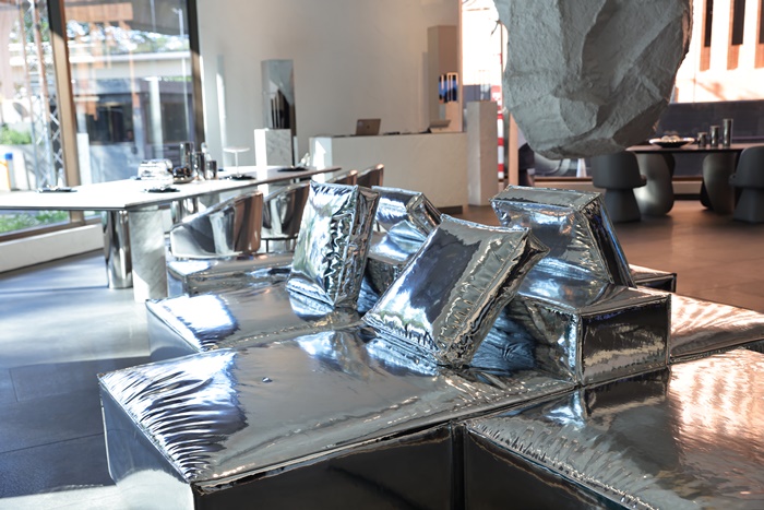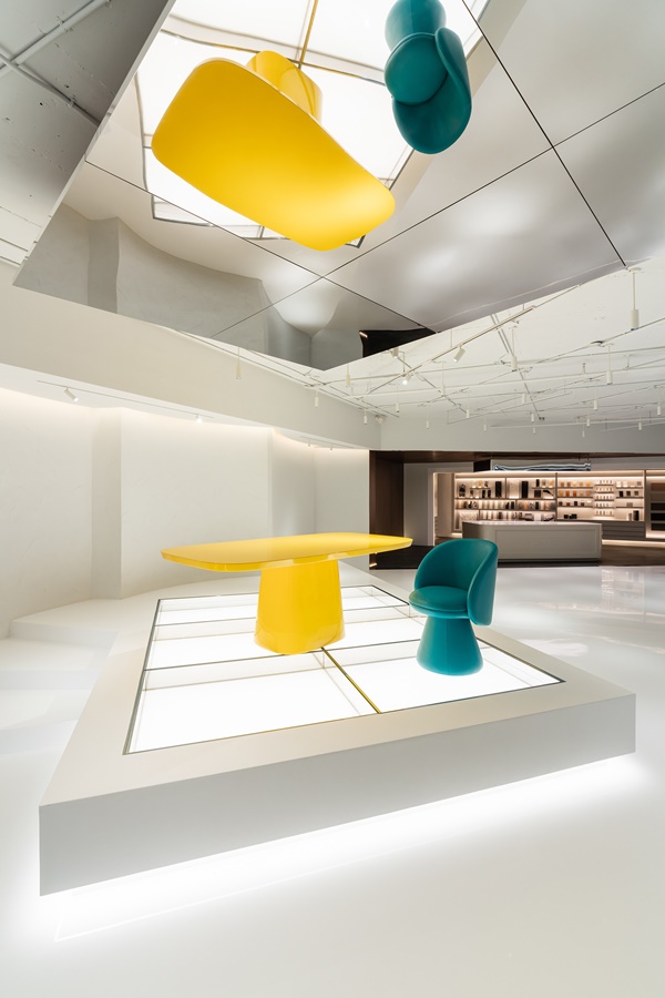 ภายในงานพบกับคอลเลคชั่นสุดไอคอนนิคที่นับเป็นไฮไลต์ของแบรนด์ อาทิ Dining Table รุ่น “Dinemaster” โต๊ะอาหารที่มีให้เลือกสรรทั้งจากวัสดุหินอ่อนและไม้ซึ่งออกแบบมาจากความต้องการที่อยากให้เฟอร์นิเจอร์ทุกชิ้นเลอค่าดุจชิ้นงานประติมากรรม ที่มีความเรียบง่าย แต่ยังคงไว้ซึ่งความสง่างาม โดยเลือกใช้รูปทรงตัว V ที่เป็นสัญลักษณ์ของแบรนด์หันชนกัน ประกอบขึ้นเป็นฐานตั้งที่มั่นคง แข็งแรง ดูไม่ทึบตัน สามารถมิกซ์แอนด์แมตช์ใช้งานได้กับเก้าอี้หลากหลายแบบ