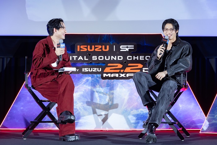 นอกจากนี้ พิธีกรอารมณ์ดีของงาน เลโอ โซสเซย์ ยังได้ร่วมพูดคุยกับแขกรับเชิญพิเศษ วิน-เมธวิน โอภาสเอี่ยมขจร นักแสดงดาวรุ่งหนุ่มหล่อ ซึ่งกล่าวถึงความประทับใจที่ได้สัมผัสสมรรถนะของเครื่องยนต์ใหม่ด้วยตัวเอง ในงานเปิดตัวครั้งแรกในโลกที่สนามช้าง อินเตอร์เนชั่นแนล เซอร์กิต จ.บุรีรัมย์ ที่ผ่านมาว่า “เมื่อความเร็วและแรงแบบล้ำอนาคตถูกส่งต่อมาในรูปแบบของภาพยนตร์ Digital Sound check ผ่านภาพและเสียงที่ยิ่งใหญ่ในทุกมิติ ทำให้ผมคิดถึงความตื่นเต้นของการขับในสนามแข่งครั้งแรกของผมกับเครื่องยนต์ ใหม่! ISUZU 2.2 Ddi MAXFORCE พลังใหม่…กำหนดโลก ที่ช่วยให้ขับสนุกและมั่นใจในทุกรอบความเร็ว ผมขอแนะนำว่า อย่าหยุดแค่ความตื่นตาตื่นใจในโรงภาพยนตร์ แต่ควรไปสัมผัสสมรรถนะความแรงของจริงได้ที่โชว์รูมอีซูซุใกล้บ้านครับ”