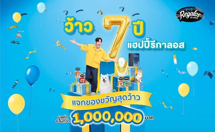 “Regalos รีกาลอส” ฉลอง 7 ปี ทุ่มงบกว่า 50 ล้าน มอบของขวัญขอบคุณลูกค้าและสังคม พร้อมดึง “นนน กรภัทร์” เสริมทัพร่วมแคมเปญใหญ่ “ว้าว 7 ปี แฮปปี้ Regalos” รายได้ส่วนหนึ่งช่วยเหลือ “มูลนิธิบ้านสงเคราะห์สัตว์พิการ”