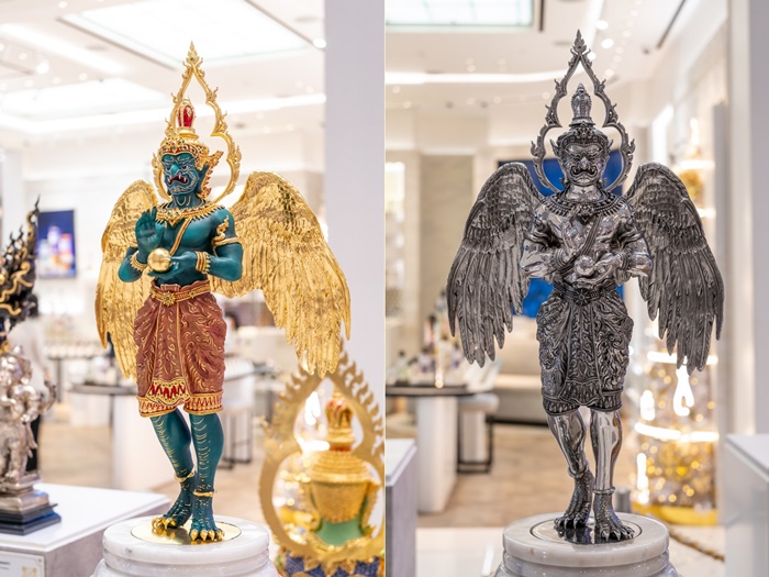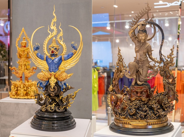 โดยชิ้นงานที่นำมาจัดแสดงเป็นงานประติมากรรมลอยตัวเชิงพุทธศิลป์ร่วมสมัยจากศิลปินชื่อดังหลายท่าน อาทิ อาจารย์ชาญ บุดดาชัยอาจารย์วัลลภ นิ่มสนอง, ตูน ธรณีศิลป์, สุริศักดิ์ พ้นภัยพาล โดยใช้เทคนิคหัตถศิลป์ไทยโบราณที่คนไทยรู้จักในชื่อว่าช่างสิบหมู่ ซึ่งมีกระบวนการอันซับซ้อนเช่น การปิดทอง การลงยา การเขียนลายรดน้ำ การเพ้นท์สีแบบจิตรกรรมไทยโบราณโดยช่างชำนาญการ ก่อให้เกิดเป็นความงดงามอันทรงคุณค่าอย่างลงตัว