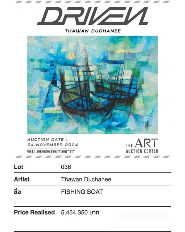 1.ถวัลย์ ดัชนี “FISHING BOAT / ตังเก” (ปี 2510) สถิติการประมูล 5,454,350 บาท