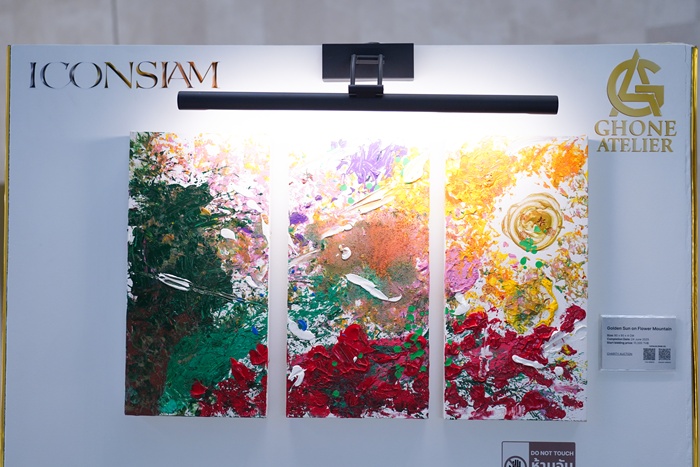 นอกจากการได้ชื่นชมผลงานศิลปะของน้องกรณ์ ศิลปินวัยจิ๋วแล้ว น้องกรณ์ยังได้เชิญชวนผู้สนใจศิลปะ ร่วมประมูลผลงานจำนวน 5 ผลงาน ได้แก่ Dirty Cars, Golden Sun on Flower Mountain, Pastel Earth, Colourful Tree และ Space Splash โดยรายได้จากการประมูล 50% หลังหักค่าใช้จ่ายจะนำไปบริจาคเพื่อฟื้นฟูหลังประสบอุทกภัยให้กับโรงเรียนวัดโรง (ขาวประชาสรรค์) ต.โรง อ.กระแสสินธุ์ จ.สงขลา และโรงเรียนอื่นๆต่อไป โดยเปิดให้ร่วมประมูลผลงานได้ตั้งแต่วันนี้ ถึง 20 ธันวาคม 2568 ผู้สนใจติดตามรายละเอียดและเงื่อนไขการประมูลได้ที่ Facebook “Ghone Atelier”