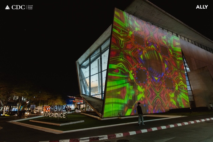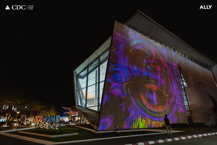 การแสดง Projection Mapping บนอาคาร SCG Home Experience ถ่ายทอดจังหวะของลมหายใจผ่านแสงและการเคลื่อนไหว โดย TIDMA เครือข่ายศิลปินกว่า 10 สตูดิโอ ร่วมกับศิลปินและนักศึกษาจาก 3 มหาวิทยาลัยชั้นนำ