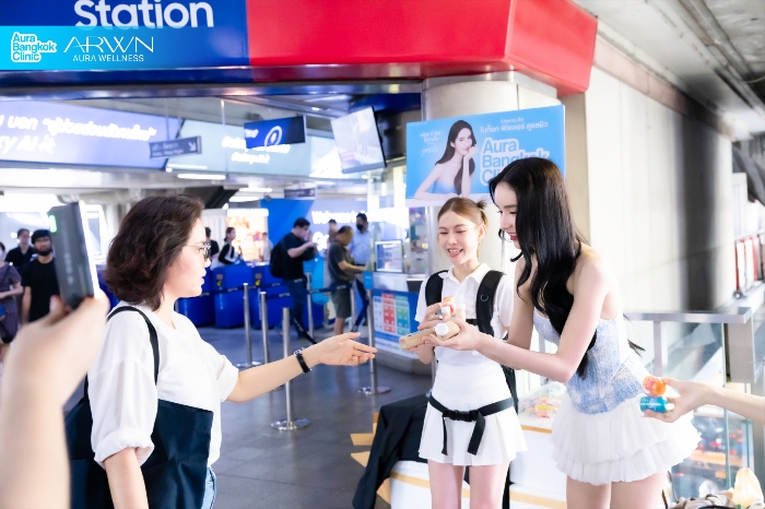 ในวันเปิดตัวแคมเปญ ทีมผู้บริหารของ Aura Bangkok Clinic นำโดย คุณเฟม เจตบดินทร์ ประคุณศึกษาพันธ์ Chief Executive Officer คุณบรีม พรกมล เพชรดาษดา Chief Marketing Officer คุณหนุย รังษิยา จิตตางกูร Chief Operating Officer คุณบูม ณัฐภัทร เตชะอธิก Chief Financial Officer และตัวแทนจาก Medyceles คุณอารียา วูวงศ์ ผู้บริหารฝ่ายปฏิบัติการ บริษัท เมดิเซเลส จำกัด พร้อมด้วย โยชิ รินรดา ธุระพันธ์ Presenter สาวสวยของ Aura Bangkok Clinic ได้ร่วมเดินทางไปกับขบวนรถไฟฟ้าออร่าอีกด้วย และในวันเดียวกันออร่ายังแจกชานม Aura Milk Tea ชานม Signature ของออร่า ให้กับผู้ที่สัญจรไปมาในสถานีรถไฟฟ้าสยาม รวมกว่า 1,000 ขวด ให้ทุกคนได้ดื่มเพื่อดับร้อนในช่วงหน้าร้อนนี้อีกด้วย