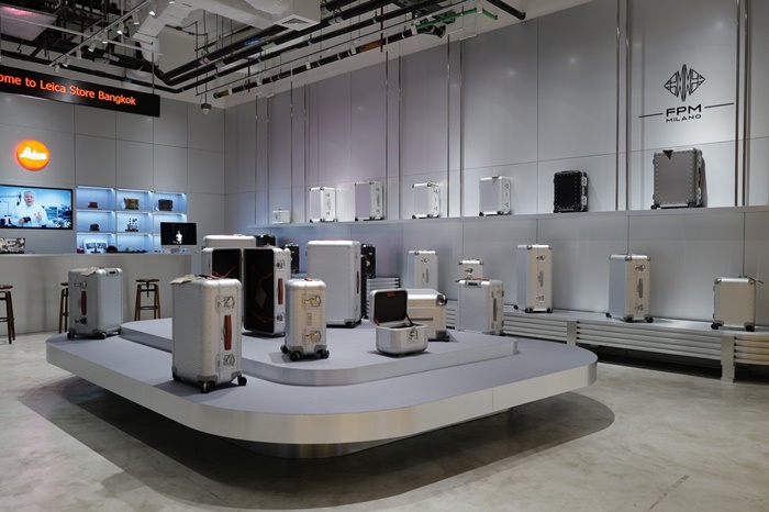 FPM MILANO Pop-Up Store ตั้งอยู่ภายใน Leica Boutique แบรนด์กล้องและอุปกรณ์ถ่ายภาพคลาสสิกระดับโลก สัญชาติเยอรมนี เรียกว่าเป็นมัลติแบรนด์บูติครวมลักซ์ชัวรี ทราเวล ไอเทม เพื่อให้นักเดินทางได้สัมผัสประสบการณ์การเดินทางที่ดีที่สุด และสะท้อนความเป็นตัวเองมากที่สุด ผ่านกระเป๋าเดินทางใบโปรด รวมถึงการเก็บบันทึกเส้นทางความประทับใจในแต่ละทริป ความสนุกที่ได้ลั่นชัตเตอร์ ผ่านเลนส์กล้องไลก้าที่ขึ้นชื่อว่าดีที่สุดในโลก”