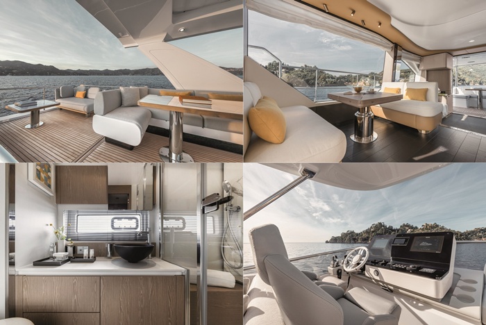 ไม่เพียงเท่านั้น อะซิมุท ยังโดดเด่นด้วยการออกแบบภายในที่พิถีพิถันในทุกรายละเอียด เน้นโทนสีอ่อนและเป็นธรรมชาติ เพื่อเสริมความโปร่ง โล่ง สบายตา ควบคู่กับการประยุกต์ใช้วัสดุคอมโพสิตและคาร์บอนไฟเบอร์ในกระบวนการผลิต ช่วยลดน้ำหนัก เพิ่มประสิทธิภาพการทรงตัว และสมรรถนะในการเดินเรือ พร้อมแนวคิดด้านความยั่งยืน ที่ให้ความสำคัญกับประสิทธิภาพการใช้พลังงาน สอดคล้องกับพื้นที่ภายใน ที่ได้รับการออกแบบให้ตอบโจทย์การใช้ชีวิตกลางทะเลอย่างแท้จริง ประกอบด้วยห้องโถงหลัก (Main Salon) ที่จัดวางเป็นเลานจ์แสนสบาย ห้องรับรองสำหรับแขก (VIP Cabin) พื้นที่รับประทานอาหารที่เชื่อมต่อกับทัศนียภาพรอบด้าน รวมถึงห้องนอนใหญ่ (Owner’s Suite) พร้อมห้องน้ำส่วนตัว สะท้อนเอกลักษณ์ของงานออกแบบอิตาเลียนร่วมสมัยที่ผสานความหรูหรา ความสบาย และฟังก์ชันการใช้งานได้อย่างลงตัว
