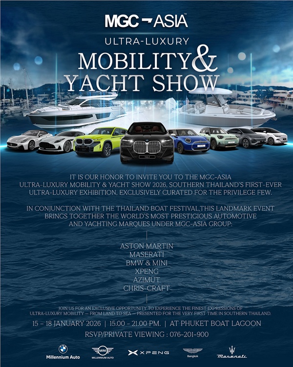 เอ็มจีซี-เอเชีย อัลตร้า ลักชัวรี โมบิลิตี้ แอนด์ ยอช์ท โชว์ 2026 โทรศัพท์: 076-201-900