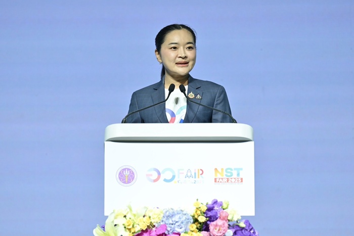 นางสาวสุดาวรรณ กล่าวว่า กระทรวงการอุดมศึกษา วิทยาศาสตร์ วิจัยและนวัตกรรม (อว.) มุ่งมั่นขับเคลื่อนนโยบาย “สร้างปัญญา เปิดโอกาส สร้างอนาคตไทย” ให้เป็นรูปธรรมผ่าน 2 ภารกิจหลัก คือ การพัฒนากำลังคนอย่างเท่าเทียม ลดความเหลื่อมล้ำทางการศึกษา ยกระดับวิทยาศาสตร์ วิจัย และนวัตกรรม เพื่อขับเคลื่อนประเทศด้วยองค์ความรู้ ซึ่งสอดคล้องกับแนวคิดการจัดงาน อว.แฟร์ 2025 : Creators of Tomorrow และงาน NST fair 2025 : Science in Action! For Sustainable Communities และแสดงให้เห็นถึงการนำนโยบายทั้ง 2 ด้าน มาสร้างเป็นเวทีที่มากกว่านิทรรศการและงานเสวนาวิชาการ แต่เป็นพื้นที่ที่จุดประกายให้คนไทยทุกช่วงวัยได้เห็นถึงความคิดสร้างสรรค์นำไปสู่การลงมือทำ พร้อมเปิดโอกาสให้เยาวชน นักวิจัย ผู้ประกอบการ และประชาชนทุกคนได้เริ่มสร้างอนาคตไทยด้วยพลังของทั้งศาสตร์และศิลป์ผสานเข้าด้วยกันจนเกิดเป็น ‘นวัตกรรม’